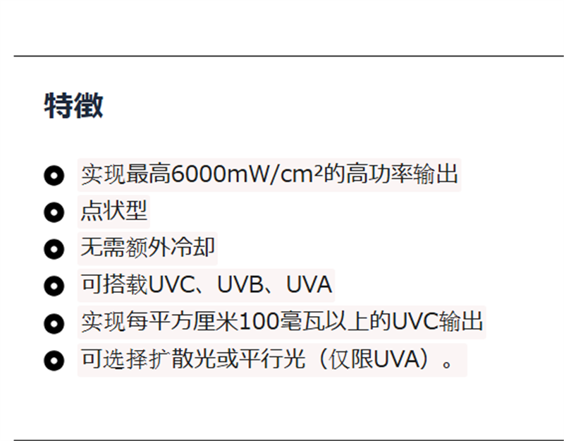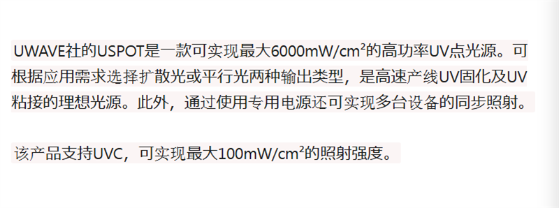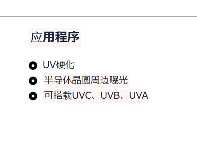 该UV照射器适用于需要高强度UV光的应用,如UV固化和半导体制造过程中的晶圆曝光